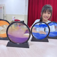 老师首先向孩子们介绍了流沙画的起源与发展,并详细讲解了铺沙、分层、注液、密封等关键步骤的技术要点,现场还进行了生动示范,激发了孩子们浓厚的兴趣。
